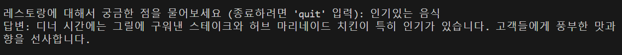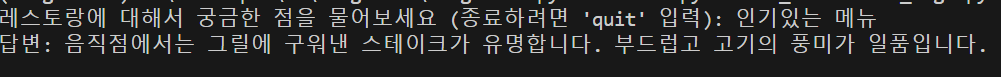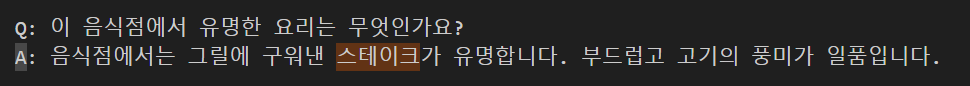 사용자 쿼리 입력 ➡️ 훈련된 정보를 기반으로 응답 생성