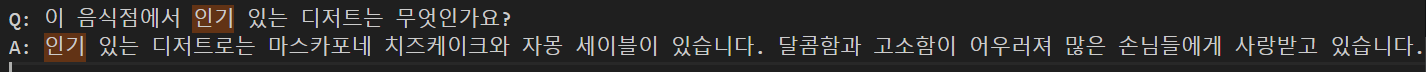 Q: 이 음식점에서 인기 있는 디저트는 무엇인가요?