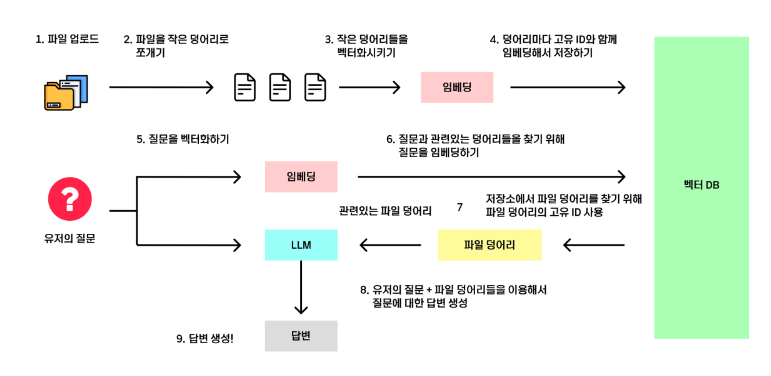 사용자가 입력한 쿼리는 벡터로 변환되고 벡터 데이터베이스와 매칭된다.