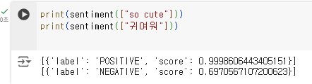 같은 의미인데 한국어와 영어의 의미가 긍정/부정으로 갈리는 것을 보면...아무래도 한국어 지원이 제대로 되지 않는 모델인 것 같다.