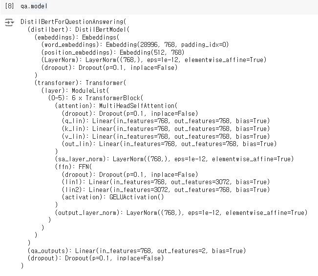 quesion-answering 파이프라인의 디폴트 모델은 DistilBertForQuesionAnswering