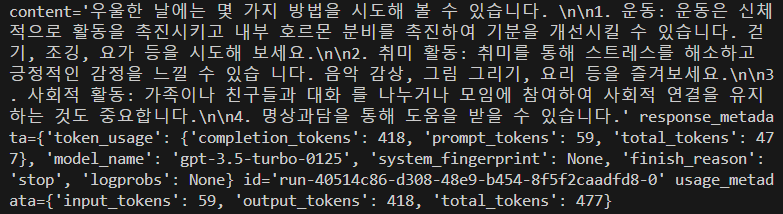 그러면 질문에 대한 답변을 받기 위해 response에 담아서 프린트 한다.